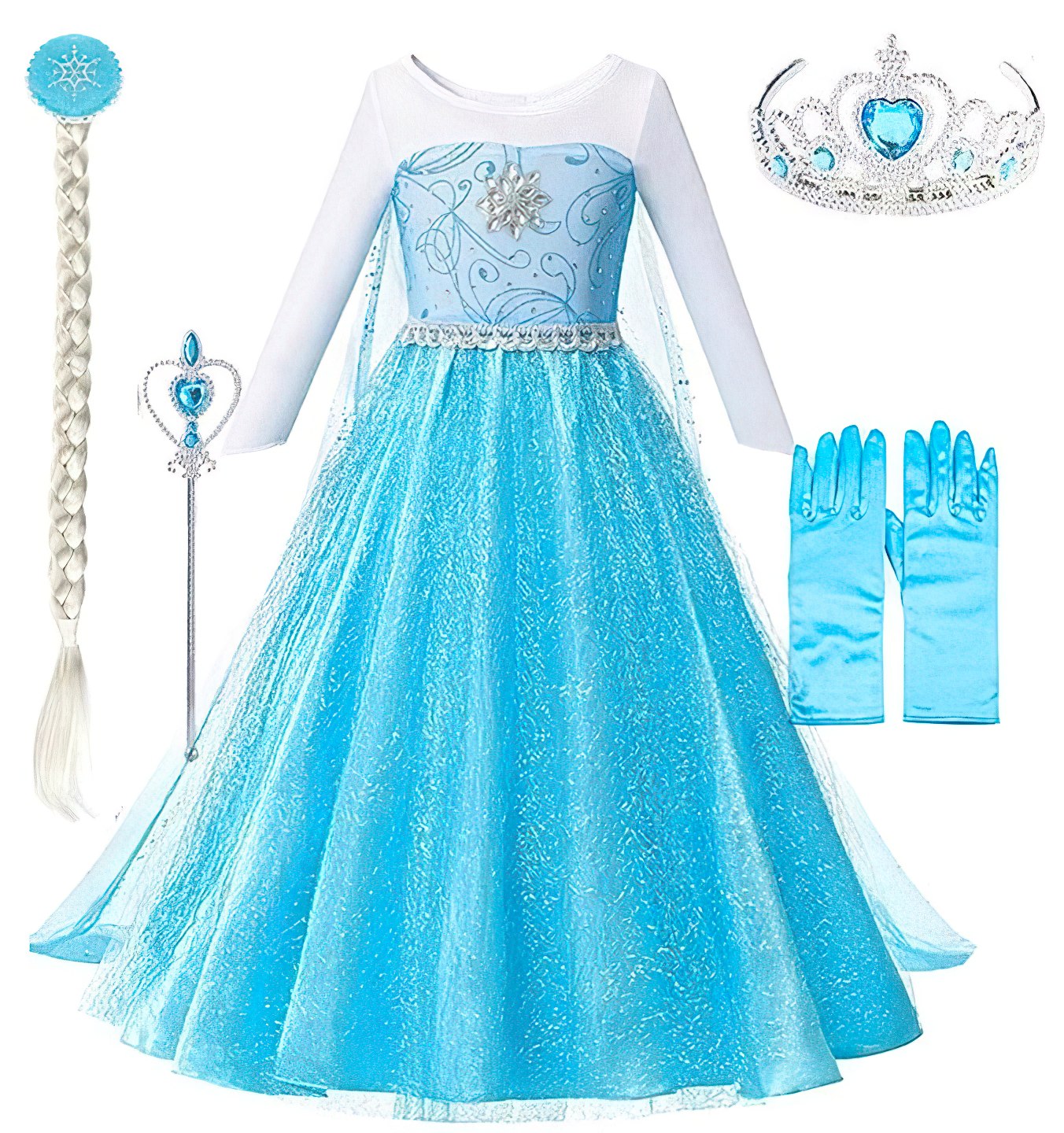 Dětský karnevalový kostým Elsa s flitry. Šaty kostýmu jsou pokryty vrchní třpytivou látkou, která vytváří nádherný jemný odlesk na šatech. Dlouhé lehké rukávy a doplňky, které jsou součástí kostýmu, dotvoří celkový vzhled a zaručí půvab každé malé královny. Nechte svou malou princeznu zažít magii s kouzelným dětským karnevalovým kostýmem Elsy z filmu Ledové království.